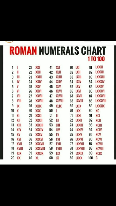 Roman numbers 1 to 100